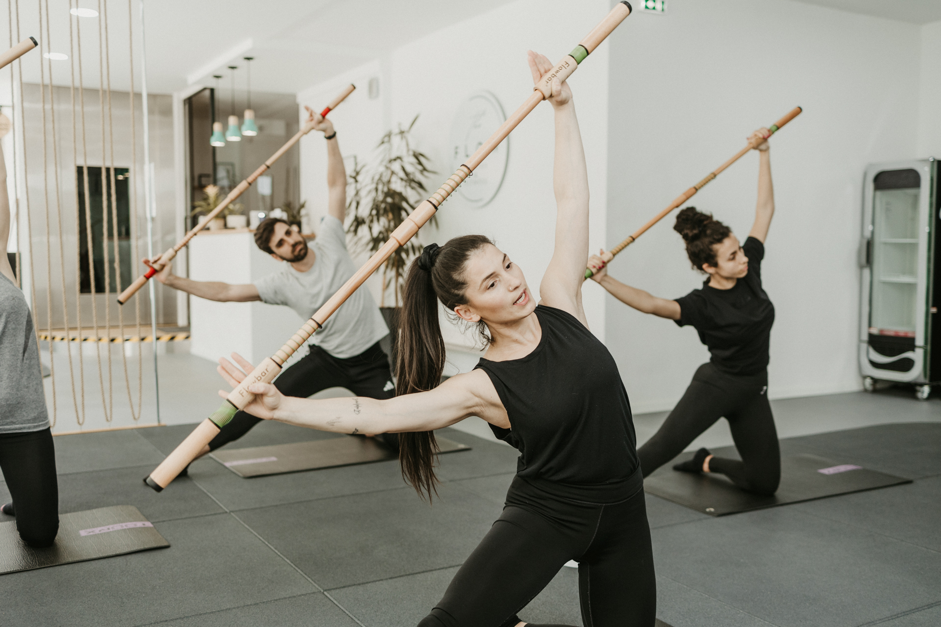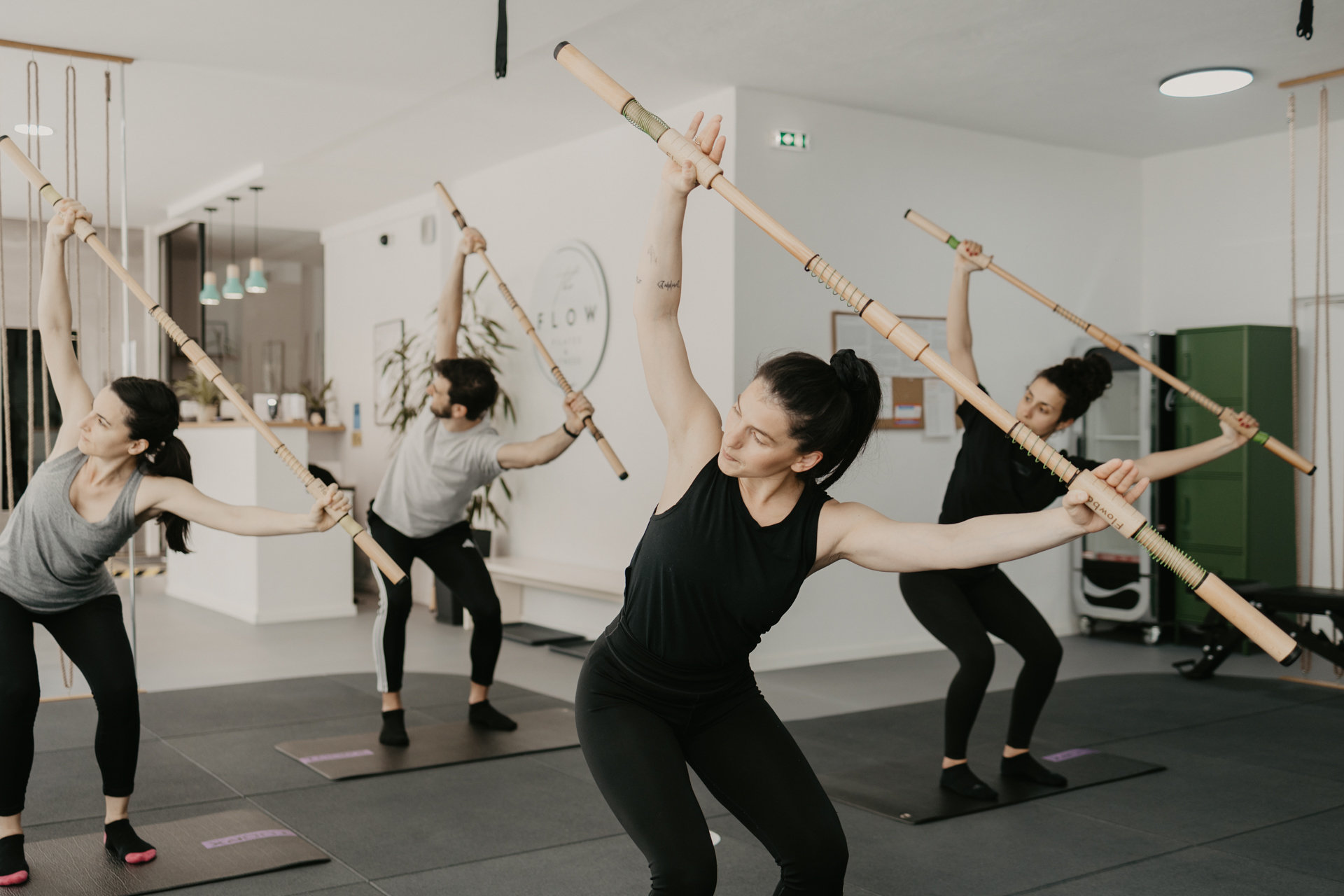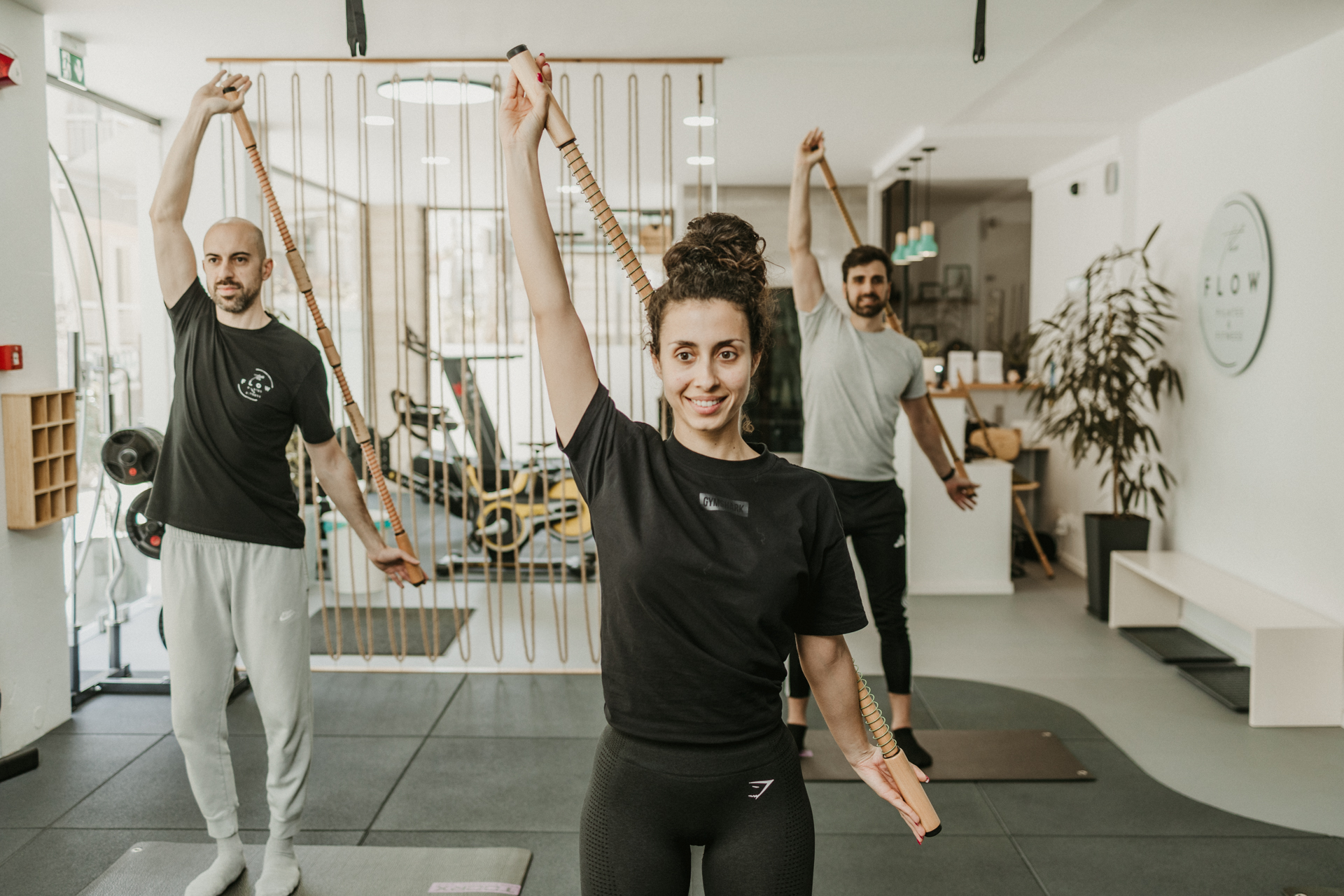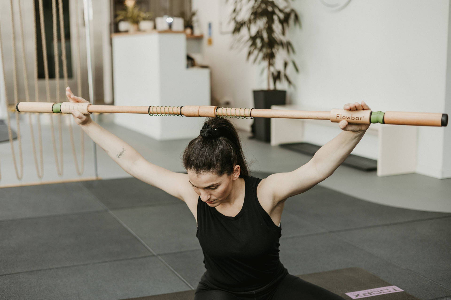 Springs can feel a little unsteady to use. This just means you need to work doubly hard to maintain your form. By pushing the springs inwards we manage to activate the powerhouse while by pushing them outwards we activate the back muscles and the rotator cuff. These two activations that Flowbar achieves are extremely important for the correct posture and proper execution of the Pilates exercises. This bar can improve the quality of the whole Pilates training. But by doing this, you’re targeting your stabilizing muscles and building core strength, all at the same time.
